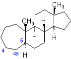 7.3 - On ring expansion (other than insertion of atoms between directly linked bridgeheads or, when a 17-sidechain is present, between C-13 and C-17), the letter a (and b etc. as necessary) is added to the highest number in the ring enlarged exclusive of ring junctions, and this letter and number are assigned to the last peripheral carbon atom in the order of numbering of the ring affected.