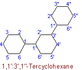 54.3 - As exceptions, unbranched assemblies consisting of benzene rings are named by using the appropriate prefix with the radical name "phenyl".Examples to Rule A-54.2