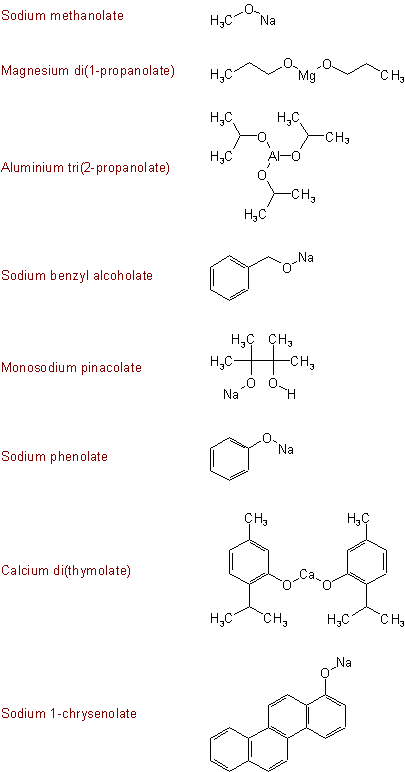 Notes: (1) Radicofunctional names for salts of alcohols and phenols may, however, also be used in some languages (not English), whereby the ending "-yl alcohol" is changed to"-ylate", as in:Examples to Rule C-206.2