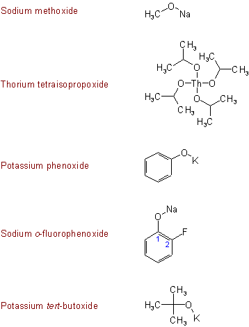 206.2 (Alternative to Rule C-206.1) - Salts composed of an anion RO and a cation (usually a metal) are named by citing, first, the cation and then the RO anion; the latter has the unabbreviated name used for the RO- radical but with the ending "-yloxy-" changed to "-yl oxide" (compare Rule C-84.2).Examples to Rule C-206.1