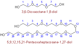 212.4 - Linear polyethers derived from three or more molecules of aliphatic dihydroxy compounds are most conveniently named by the openchain replacement nomenclature (see Subsection C-0.6).Example to Rule C-212.3