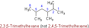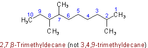 (b) The chain whose side chains have the lowest-numbered locants.Example to Rule A-2.6(a)