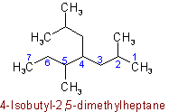 2.25 - Univalent branched radicals derived from alkanes are named by prefixing the designation of the side chains to the name of the unbranched alkyl radical possessing the longest possible chain starting from the carbon atom with the free valence, the said atom being numbered as 1.Examples to Rule A-2.2