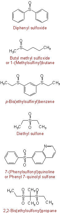 are named "sulfoxides" and "sulfones", respectively. Specific names are formed by
