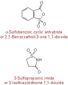 643.2 - Cyclic anhydrides formed by loss of water between a sulfur acid and a carboxylic acid group, and the analogous imides, are named by replacing "acid" in the name of the corresponding acid by "cyclic anhydride" or "imide", respectively; alternatively, they are named as cyclic compounds by the rules of Section B, with use of "oxide" and a locant to denote oxygen attached to sulfur.Examples to Rule C-643.1(b)