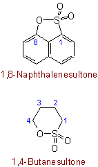 671.2 - Compounds containing a group -SO2-N< as part of a ring are named by adding "-sultam" to the name of the hydrocarbon with the same number of carbon atoms. The -SO2- group has priority over the -NH- group for lowest available number.Examples to Rule C-671.1
