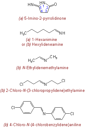 815.3 - A compound containing a group >C=NH may be named (a) from the corresponding -CH2 compound by means of a suffix "-imine" or, if a group having priority for citation as principal group is also present, by a prefix "imino-", or (b) by citing the name of the bivalent radicalExample to Rule C-815.2