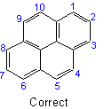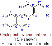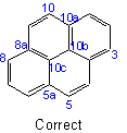 The system thus oriented is numbered in a clockwise direction commencing with the carbon atom not engaged in ring-fusion in the most counter-clockwise position of the uppermost ring, or if there is a choice, of the uppermost ring farthest to the right, and omitting atoms common to two or more rings.Example to Rule A-22.1