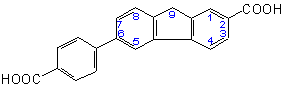 Principal group: -carboxylic acid Senior ring system for parent: Fluorene Name of parent including principal group: Fluorene-2-carboxylic acid Prefixes: Phenyl- Carboxy- Together with later rules this leads to the name: 6-(p-Carboxyphenyl)fluorene-2-carboxylic acid