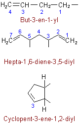 derived from saturated parent hydrides (see R-2.1), the free valences can be at any position on the parent structure. Accordingly, for acyclic unsaturated parent structures, all locants for