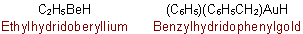 These may be named by citing prefixes denoting the organic groups and the prefix "hydrido-" denoting hydrogen atoms, if any, in alphabetical order, followed by the name of the metal. The presence of any hydrogen atoms attached to the metal atom must always be so indicated. There is no space between the group names and that of the metal.