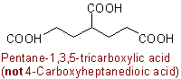 If an unbranched chain is directly linked to more than two carboxy groups, these carboxy groups are named from the parent hydride by substitutive use of a suffix such as "-tricarboxylic acid", etc.Examples to R-5.7.1.1