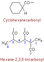 An acyl group derived from an acid named by means of the suffix "-carboxylic acid" is named by changing the suffix to "-carbonyl".Examples to R-5.7.1.1
