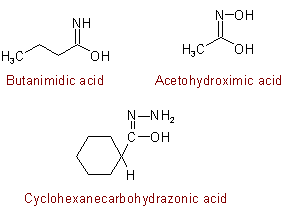 "-imidic" or "-carboximidic acid", "-ohydrazonic" or "-carbohydrazonic acid", "-ohydroximic" or "-carbohydroximic acid", respectively (see Table 13 and R-3.4).