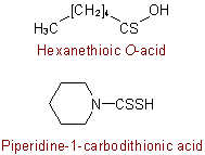 R-5.7.1.3.4 Thiocarboxylic and thiocarbonic acids. Replacement of oxygen atom(s) of a carboxylic acid group or of carbonic acid by another chalcogen is indicated by the affixes "thio", "seleno", and "telluro". These names do not differentiate between tautomeric forms of mixed chalcocarboxylic or chalcocarbonic acids; such nonspecificity may be shown in a formula by a structure such as:Example to R-5.7.1.3.3