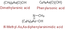 R-5.7.3.2 Arsenic oxo acids and replacement modifications containing pentavalent arsenic directly attached to an organic group are named in the same way as their phosphorus analogues (see R-5.7.3.1)Examples to R-5.7.3.1