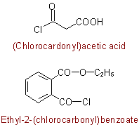 When another group is present that has priority for citation as prinsipal group or when attached to a substituting group, an acyl halide group is expressed by a prefix such as "fluorocarbonyl-", "chlorocarbonyl-", "bromocarbonyl-" or "iodocarbonyl-"Examples to R-5.7.6