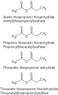 The various unsymmetrical thioanhydrides derived from acetic propionic anhydride are named as follows:Examples to R-5.7.7.3