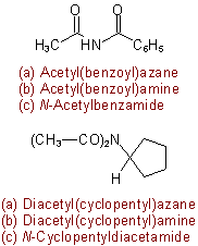 hydride azane; (b) as a diacylamine, a diacylalkyl- (or aryl, etc.) amine, or a triacylamine; or (c) as alkyl (or aryl, etc.) or acyl derivatives of a primary amide (see R-5.7.8.1),