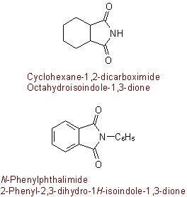 acid by "-imide" or "-dicarboximide". They can also be named as heterocycles.
