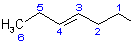 indicates the presence of a double bond between chain atoms 3 and 4, giving the following structure: