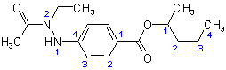 (a) The acyclic alcohol from which this ester is derived is described by the first word '1-methylbutyl'. The prefix 'butyl' indicates a four-carbon chain derived from the parent hydride 'butane'. The prefix 'methyl-' with its locant '1' indicates that a methyl group is at position '1' of the butyl group which, by definition, also bears the free valence, resulting in the following structure and numbering for the alcoholic component.