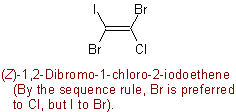 , assigned as follows. The sequence-rule-preferred atom or group (see R-7.2.1) attached to one of a doubly bonded pair of atoms is compared with the sequence-rule-preferred