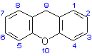![]() Xanthene (9H-isomer shown) (An exception to systematic numbering) (Chalcogen analogues are named using the prefixes "thio-", "seleno-" and "telluro-".) |