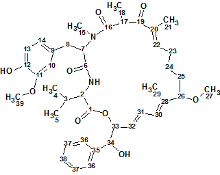Aetheramides are structurally distinctive cyclic peptides isolated from a novel myxobacterial genus with the proposed name of “Aetherobacter”. These natural products are characterized by both their unique structures and their potential for HIV inhibition. Plaza et al [1] isolated two new unusual depsipeptides, aetheramides A and B. Their structures were elucidated using extensive NMR (1H, 13C, HSQC, COSY, HMBC, HOHAHA) and ESIMS analysis, chemical derivatizations, and by the combined analysis of homonuclear (H-H) and heteronuclear 2,3JCH-couplings and quantum mechanical calculations. Here we will discuss the computer-assisted structure elucidation (CASE) of aetheramide B (1) using ACD/Structure Elucidator.