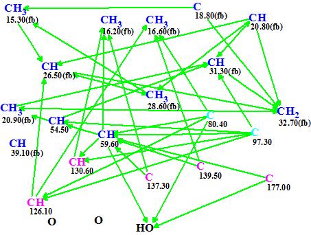 | C 16 | 16.2 | 17.49 | CH3 | 1.84 | C 1, C 2, C 3 |
