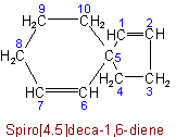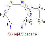 41.2 - The carbon atoms in monospiro hydrocarbons are numbered consecutively starting with a ring atom next to the spiro atom, first through the smaller ring (if such be present) and then through the spiro atom and around the second ring.Examples to Rule A-41.1