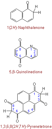 315.2 - The following modifications (but not others) of names of carbocyclic ketones formed according to Rule C-315.1 may be used: anthrone [instead of 9(10H)-anthracenone], phenanthrone (instead of 9(10H)-phenanthrenone) .Examples to Rule C-315.1