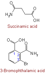 431.3 - When the corresponding dicarboxylic acid has a trivial or semitrivial name, N-phenyl derivatives of-amic acids are named by changing the ending "-amic acid'' to "-anilic acid''.Examples to Rule C-431.2