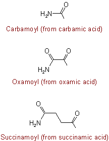 431.2 - Acyl radicals derived from the above amic acids are named by replacing the "-amic acid" ending by "-amoyl''.
