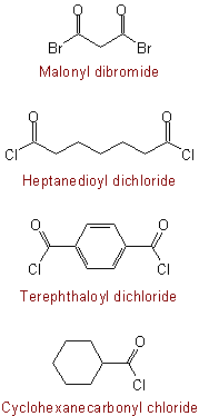 481.2 - When another group is present that has priority over acyl halide for citation as principal group, or when the acyl halide group is attached to a side chain, the prefix "fluoroformyl-", "chloroformyl-", "bromoformyl-", or "iodoformyl-" is used.Examples to Rule C-481.1