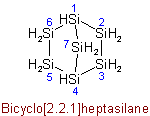 Prefixes such as 1Si- and 1N- are used in polycyclic systems of alternating skeletal atoms when it is necessary to indicate the atom at the bridgehead that is to have the locant '1'.Examples to R-2.4.2.2