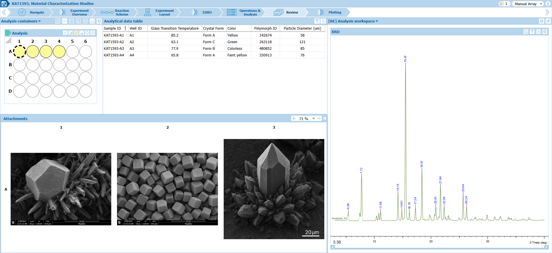 • Katalyst is purpose-built to support your entire workflow—whether it is HT experimentation, reaction scale-up, or solid state characterization.