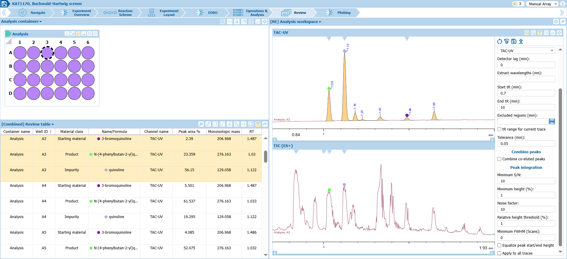 • Identify optimal reaction conditions with connected data automatically assembled in one place.
